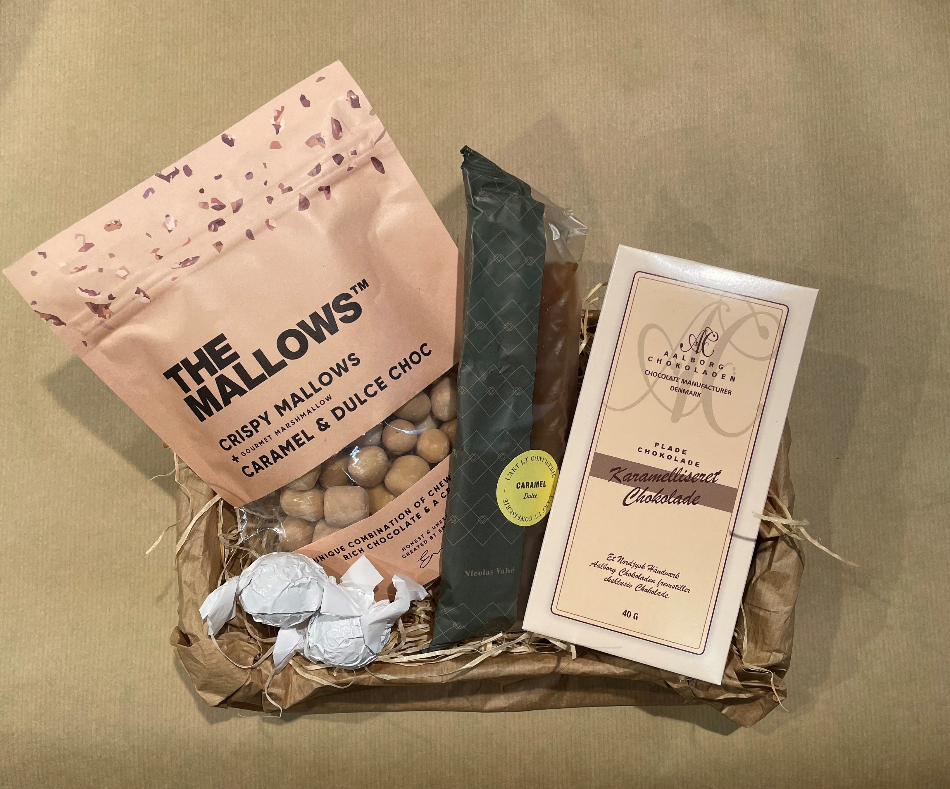 Vi laver mange lækre gavekurve med skønne specialiteter, chokolade, lakrids samt produkter fra Meraki m.m